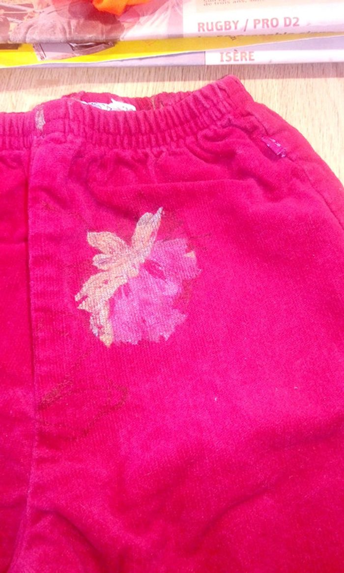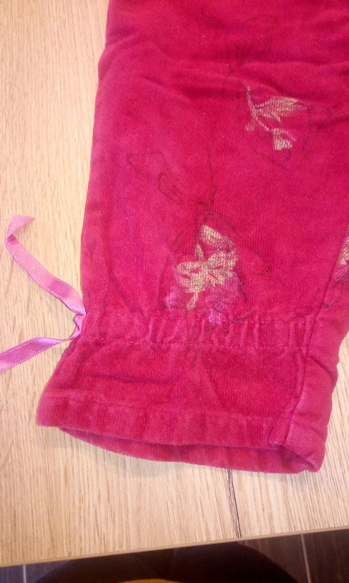 Pantalon 100% coton ,en parfait état.bordeaux avec des noeuds en bas de chaque jambe.élasticité à la taille.taille 6mois/67cm