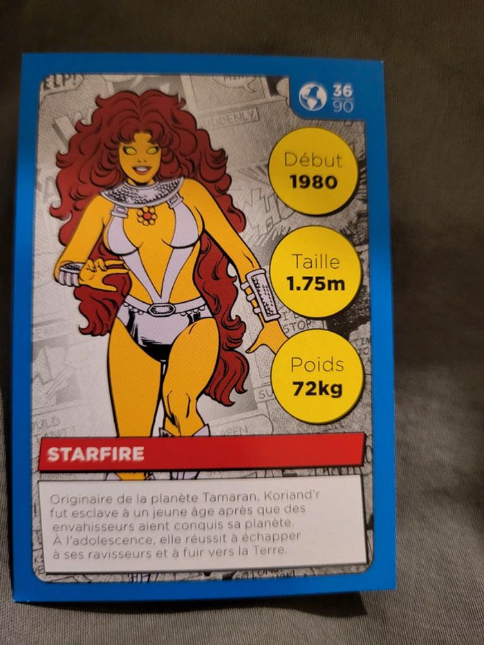 Carte Héros DC Auchan 2022 n° 36 /90 Starfire J'ai bcp de cartes en double, n'hésitez pas à me demander si je ne les ai pas.