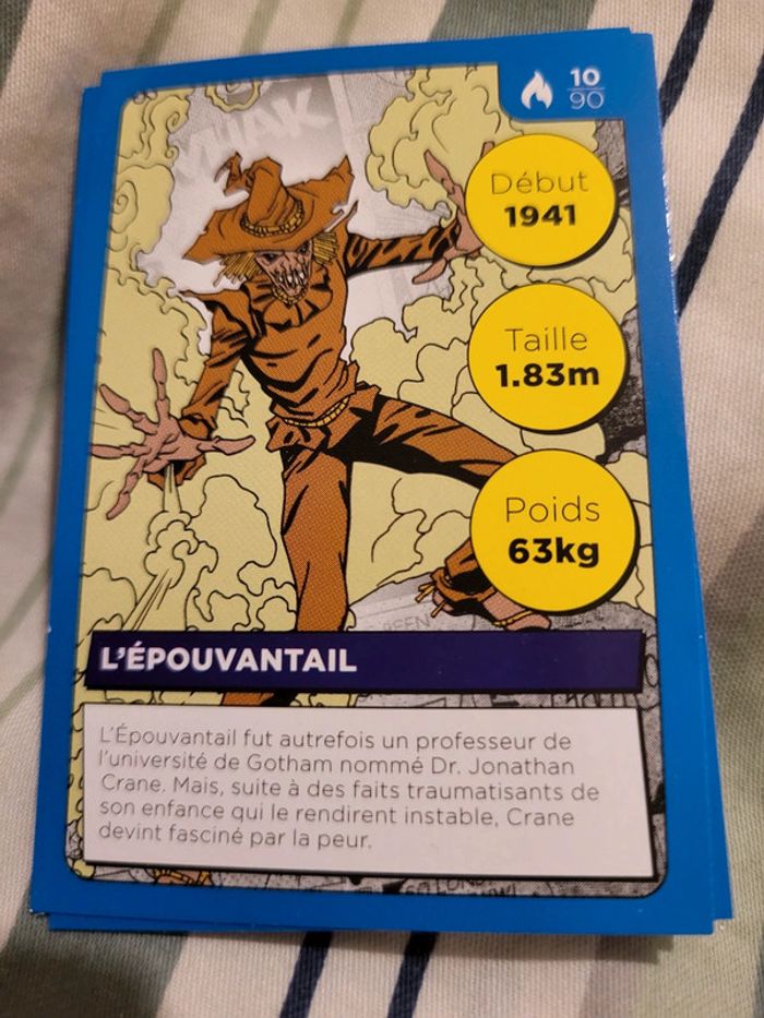 Carte Héros DC Auchan 2022 n° 10 /90 l'épouvantail J'ai bcp de cartes en double, n'hésitez pas à me demander si je ne les ai pas.