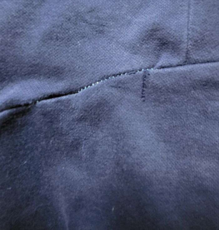 Jogging bleu marine Puma. 14 ans. Il y avait un trou mais on l'avait recousu. Très peu porté malgré tout.