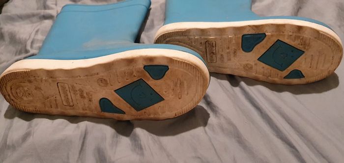 Bottes de pluie bleues Tribord Taille 32/33 Semelle sale, mais bottes en très bon état. Mise 2 fois. Il y a le nom de l'enfant à l'intérieur #manou0201_pointure32 #manou0201_pointure33