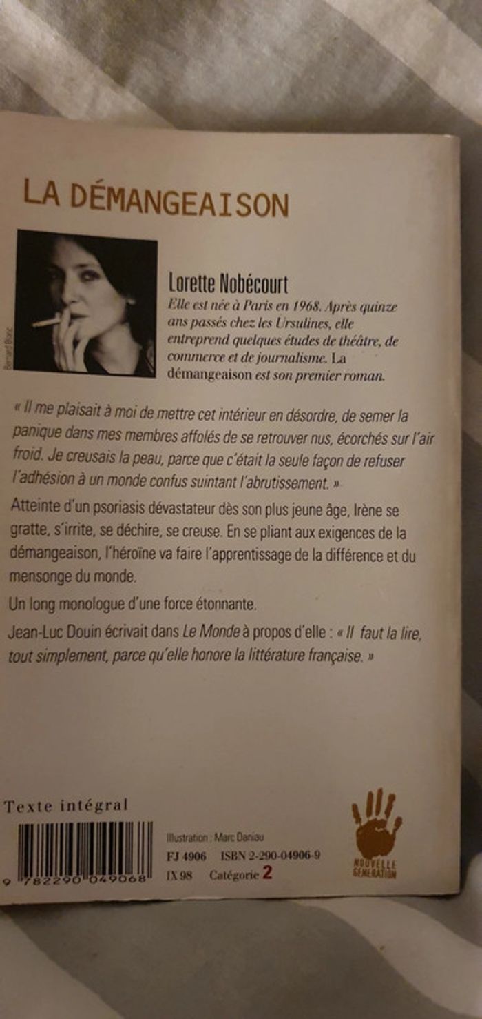 La démangeaison Lorette Nobécourt Pages jaunies, couverture légèrement rayée