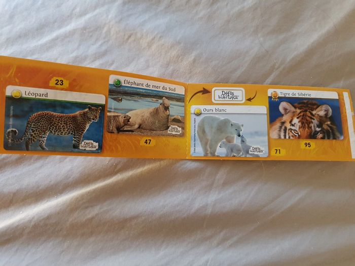 Autocollants Défis Nature Auchan 23-47-71-95 Envoi par la poste avec un timbre sans suivi. Si vous souhaitez un suivi me le dire pour modifier les frais d envoi.