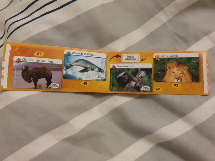 Autocollants Défis Nature Auchan 21-45-69-93 Envoi par la poste avec un timbre sans suivi. Si vous souhaitez un suivi me le dire pour modifier les frais d envoi.