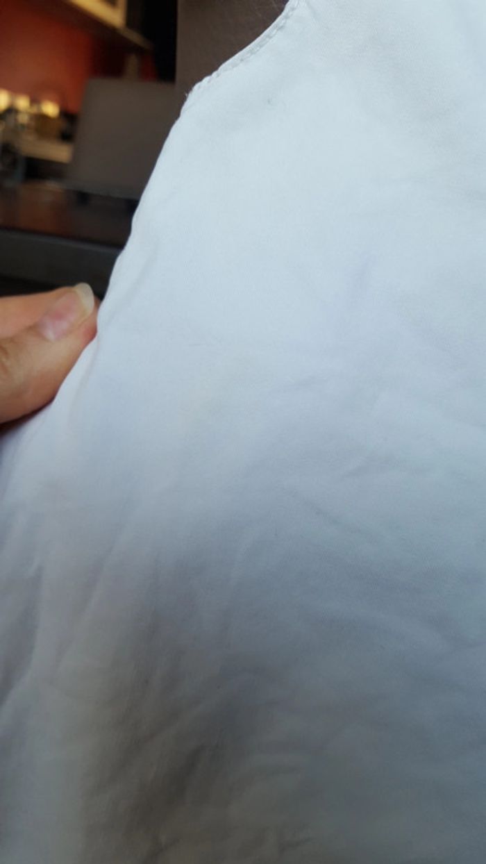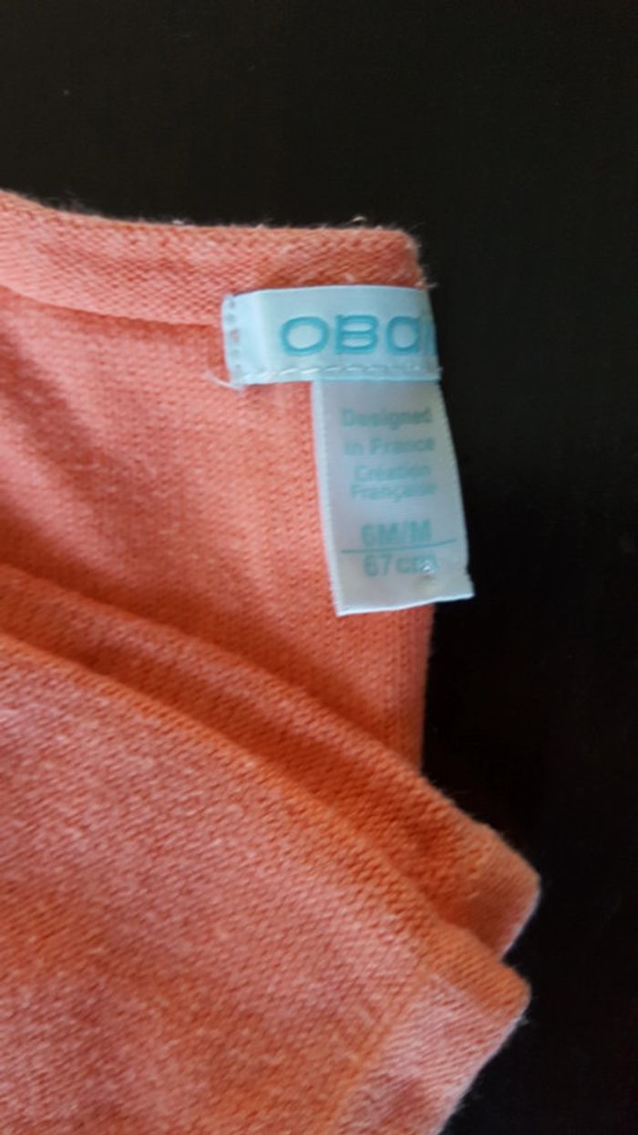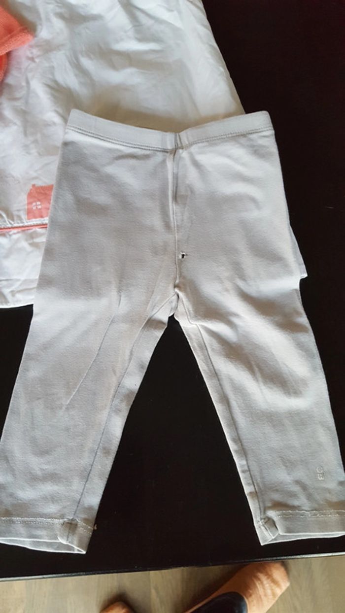 Bon état général poyr ce lot. Aucun défaut sur le filet couleur corail en 6 mois. La robe est en très bon état malgré une petite trace jaunes dans le dos qui ne se voit pas sur la photo (la photo 4 ne rend rien), elle est en 6 mois également. Le legging est en 12 mois et à un petit trou sur le devant (voir photo n°6)