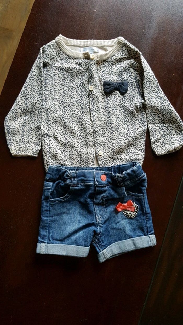 Gilet + short en jean assorti. Les 2 sont en très bon état. #bebefille3mois