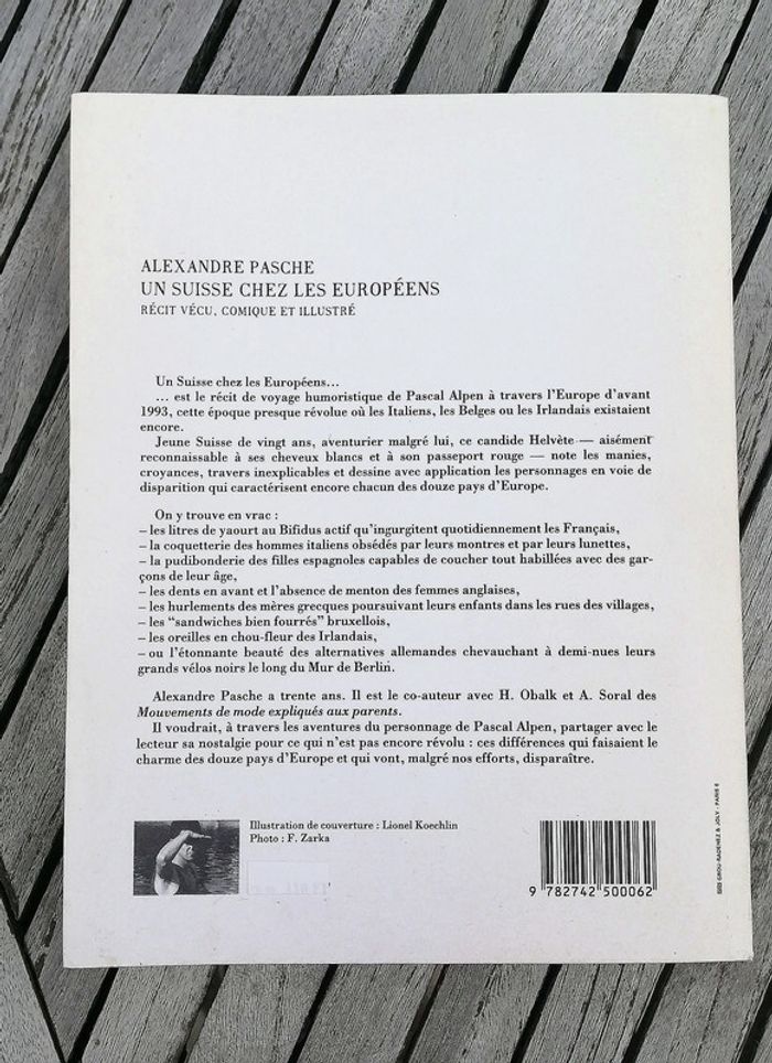 Auteur Alexandre Pasche Edition : Mentha Dimensions 17 x 22cm - 255 pages Couverture souple ISBN : 9782742500062 Un suisse chez les européens... Est le récit de voyage humoristique à travers l'Europe avant 1993 La première aventure de Pascal Alpen, jeune voyageur suisse. Ce candide Helvète note et dessine les manies quotidiennes, les objets nationaux, les travers, les croyances en voie de disparition qui caractérisent encore chacun des douze pays européens.
