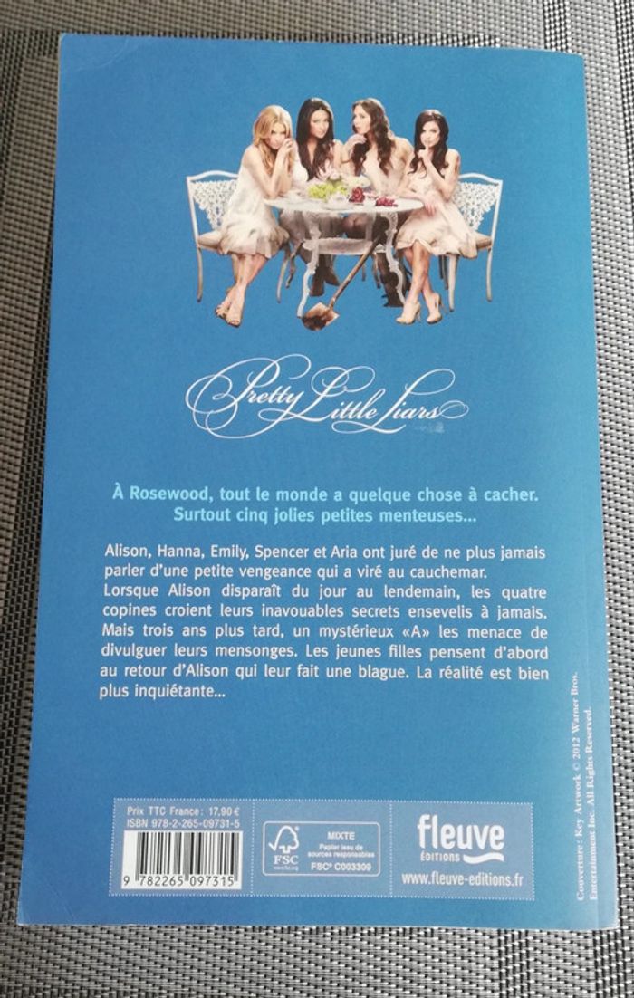 Auteur Sara Shepard Editeur Fleuve Editions Collection Territoires ISBN 9782265097315 Dimensions14 × 22 × 3,1 cm Couverture souple - 860 pages Alison, Hanna, Emily, Spencer et Aria sont les filles les plus populaires de Rosewood, mais derrière leurs minois angéliques et leurs vêtements de marque se cachent des secrets inavouables, notamment… l'Affaire Jenna. Une petite vengeance qui s'est transformée en cauchemar… Les cinq filles se sont juré de ne plus jamais en parler. Lorsque Alison disparaît du jour au lendemain, ce sont tous leurs secrets qui disparaissent avec elle. Mais trois ans plus tard, un mystérieux « A » les menace de divulguer chacun de leurs mensonges et forfaits. Les jeunes filles croient d'abord au retour d'Alison qui leur ferait une blague, mais la réalité est tout autre. Et bien plus terrifiante…