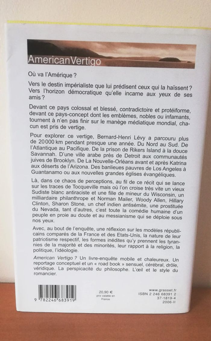 Editeur Grasset ISBN 9782246683919 Couverture souple avec jaquette 494 pages Dimensions 13,5 × 20,5 × 4,0 cm American Vertigo ? Un livre-enquête mobile et chaleureux. Un reportage conceptuel et un " road book " sensuel, cérébral, drôle, véridique. La perspicacité du philosophe. L'œil et le style du romancier. A l'origine, ce livre est né d'une " commande " de l'influent magazine Atlantic Monthly : demander à un intellectuel français de visiter l'Amérique et de donner sens à ce pays-continent en refaisant le fameux voyage qu'Alexis Tocqueville avait entrepris au début du XIXe siècle, à partir duquel il avait écrit son désormais classique De la démocratie en Amérique. Pendant une année, B.-H. Lévy a ainsi sillonné les Etats-Unis. Plus de vingt mille kilomètres d'est en ouest et du nord au sud, la plupart du temps par la route.