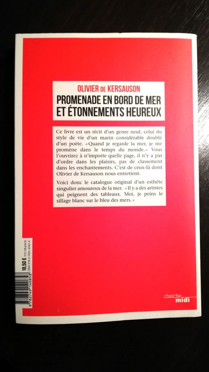 Auteur Olivier de Kersauson Éditeur Cherche Midi EAN 9782749140858 Nombre de pages 213 Dimensions 22 x 15 x 2 cm Le navigateur partage ses diverses expériences en mer autour du monde en décrivant son style de vie marin de façon poétique. Il évoque l'aspect esthétique de l'univers qui lui est cher.