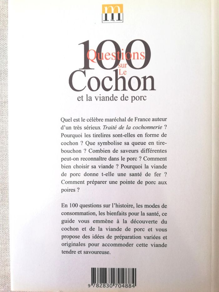Le cochon et la viande de porc de Catherine Sauvat Éditeur Minerva Collection(s) : 100 questions Dimensions : 16 X 22 cm EAN : 9782830704884 Histoire et culture Répond à toutes les questions que se pose le consommateur à propos de la viande de porc. Aborde ainsi son histoire, sa fabrication, sa production (artisanale et industrielle), ainsi que sa consommation. En 100 questions sur l'histoire, les bienfaits pour la santé, ce guide vous emmène à la découverte du cochon et de la viande de porc et vous propose des idées de préparation variées et originales pour accommoder cette viande tendre et savoureuse.