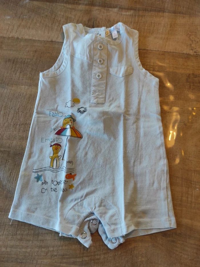 Combinaison sans manches bleu clair. Taille 3 mois. Bon état.