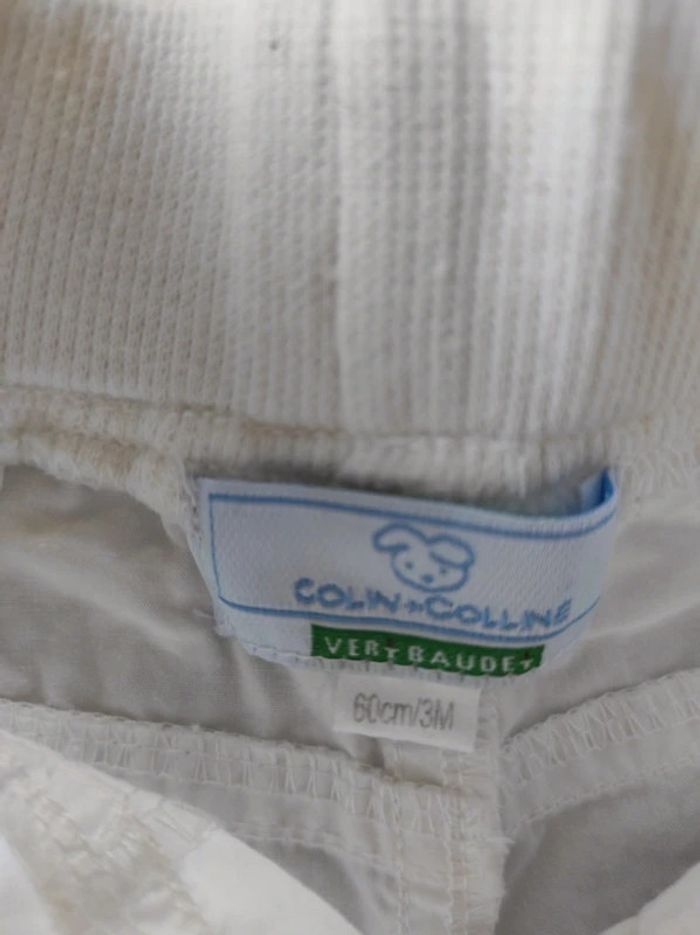 Pantalon blanc en toile légère. Taille élastiquėe. 3 mois, collection Colin colline de Vertbaudet. Pas de tâche.