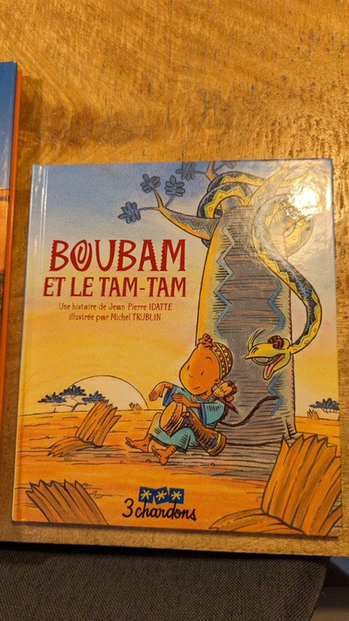 - Grand livre " Le désert raconté aux enfants" ( à noter qu'il y a une étiquette avec le nom de mon fils à la 1ere page) - Livre " Boubam et le Tam-tam"