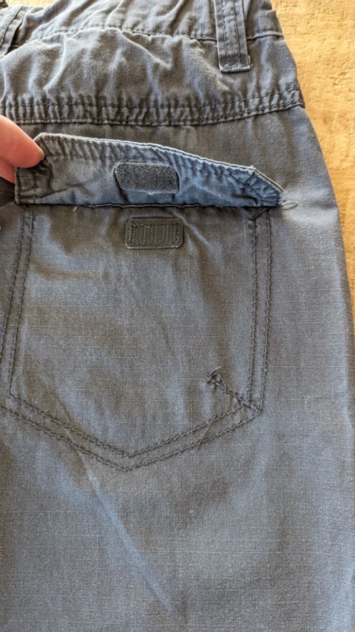 Short avec fausse poche au niveau des fesses qui se ferme par un scratch. Taille réglable à l'intérieur.