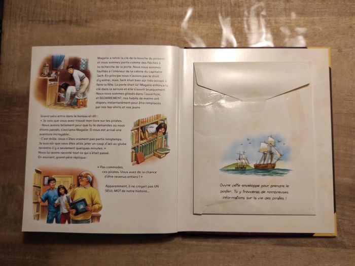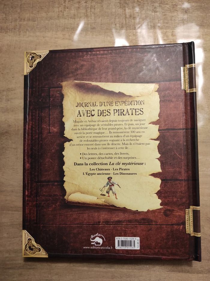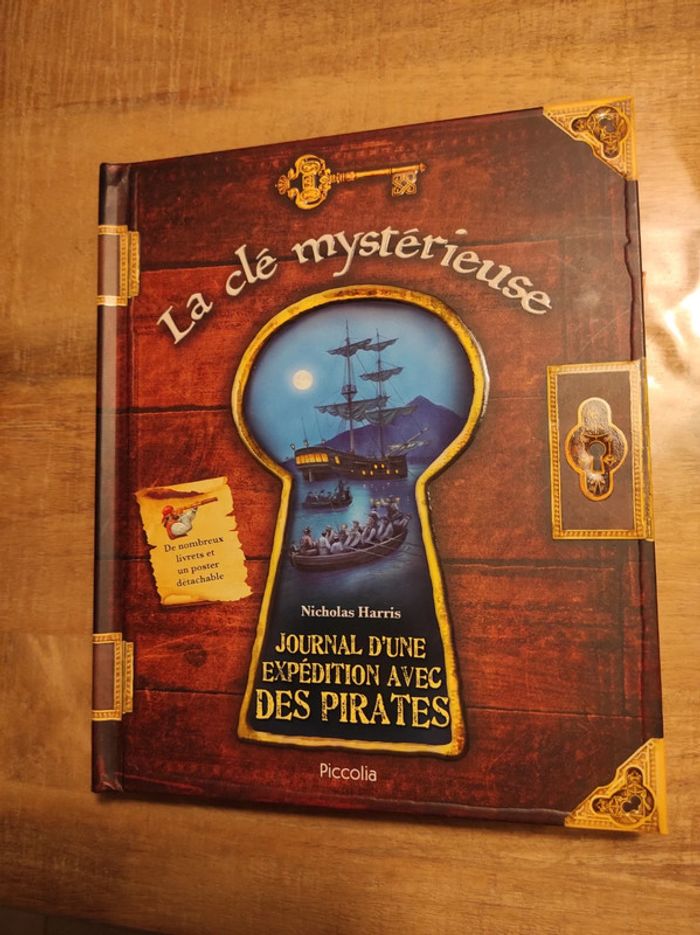 Livre "La clé mystérieuse, journal d'une expédition avec des pirates", complet en bon état sauf la dernière page qui est une enveloppe contenant un poster (voir photo)