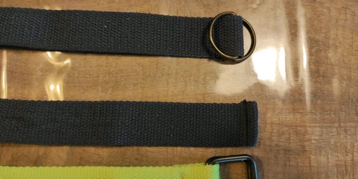 Une ceinture grise foncée de 67 cm de long, une ceinture jaune fluo de 71 cm de long. Réglable facilement grâce au système d'attache.