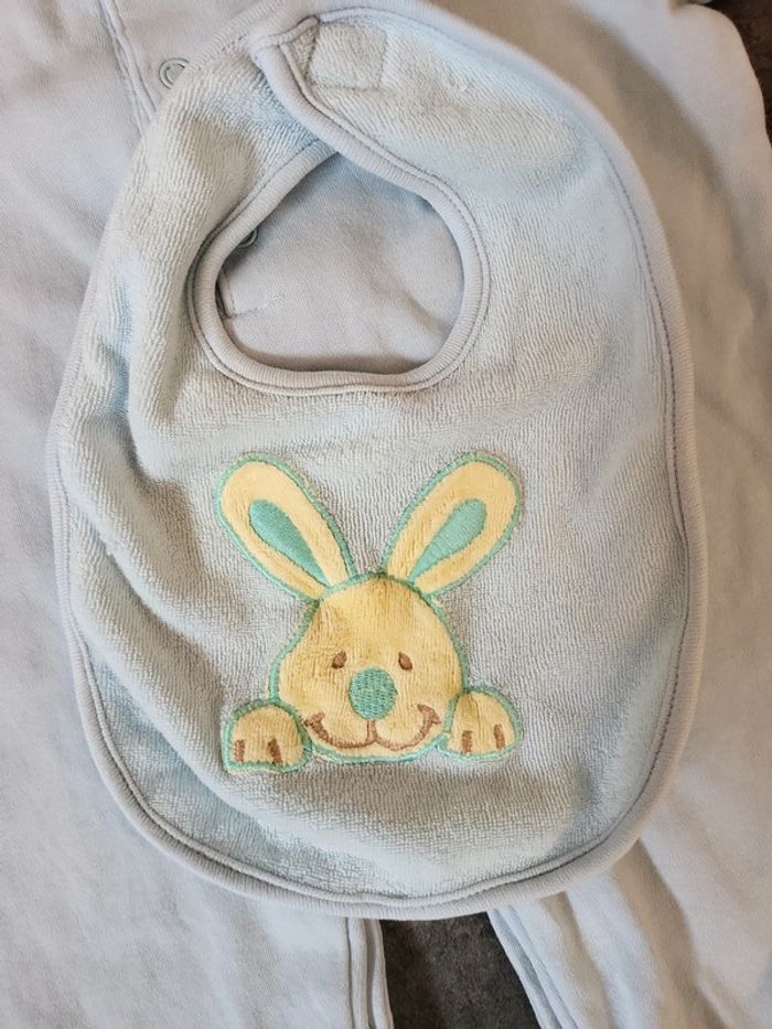 Bavoir très légèrement taché. Semble être large pour du 3 mois. #ensemblepyjamagarcon #kimbaloo3mois #tresbonetat #envoirapide #envoisoigné #auva56_garcon3mois