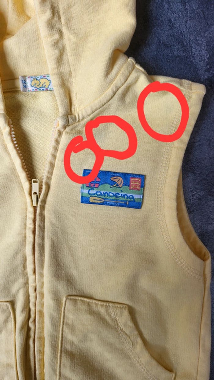L'ensemble est en très bon état, gilet jaune amovible, mais le lavage en machine avait fait déteindre le jean sur le gilet jaune laissant quelques tâches, que j'ai réussi à estomper il reste de légères traces voir 3 dernières photos photos. Je peux faire des photos supplémentaires sur demande. #ensemblebébégarçon #ensemble12moisgarcon #tresbonetat #envoirapide #envoiesoigné #auva56_garcon12mois