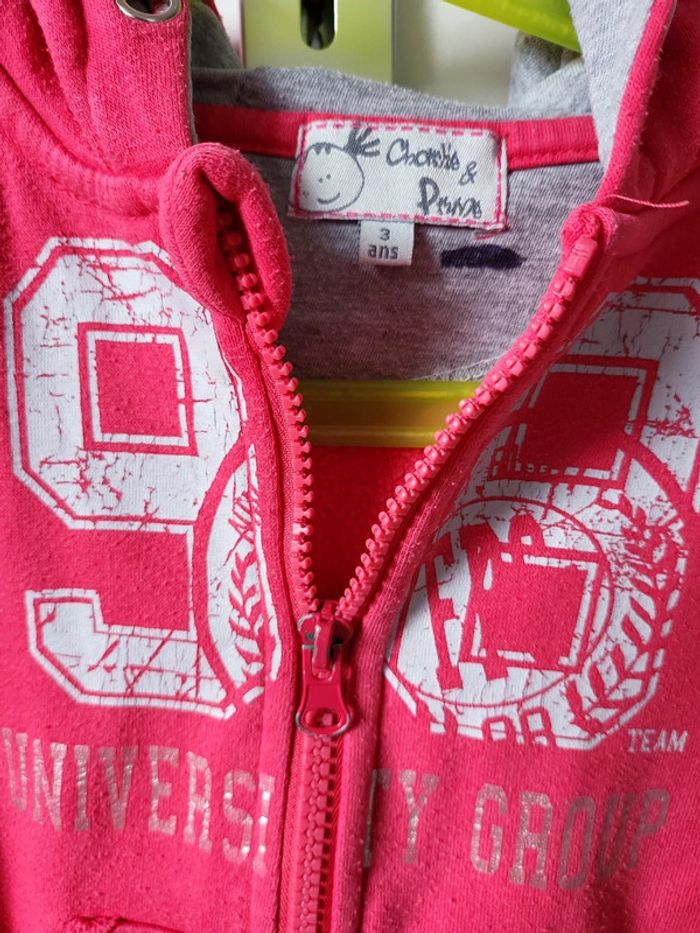Gilet à capuche zippé fille 3 ans charlie et prune bon état - photo numéro 2