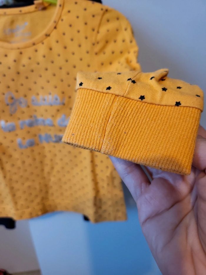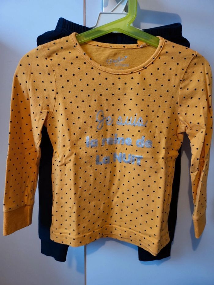 Haut moutarde et bas marine. Quelques bouloches au niveau des manches voir photos 5 et 6 #pyjamafille #pyjama3ansfille #charlieetprune #tresbonetat #envoirapide #envoisoigné #auva56_fille3ans