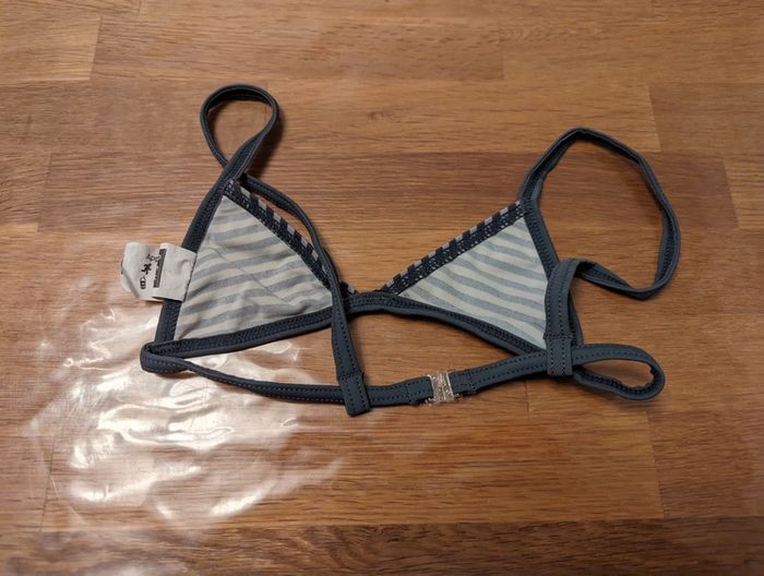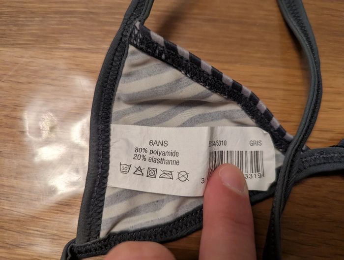 Maillot de bain 2 pièces fille 6 ans CFK Très bon état, porté une fois, gris à rayures grises #cellie89_fille6ans
