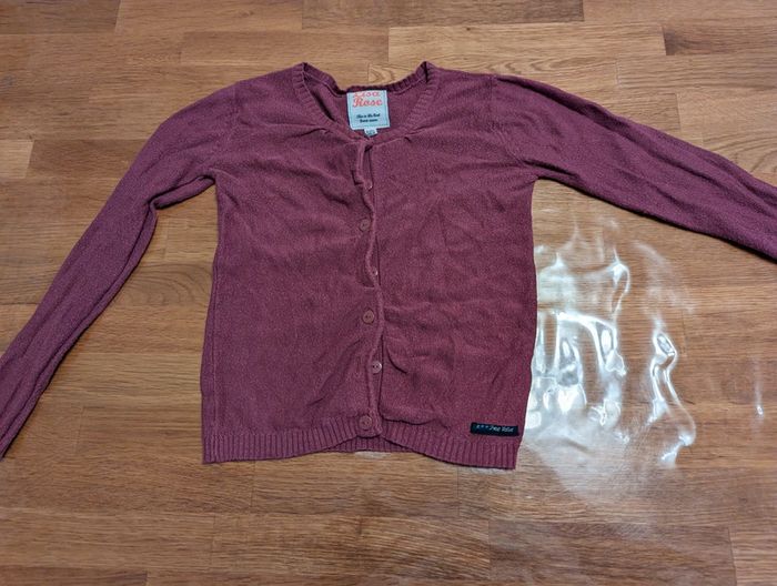 Gilet fille 5 ans Lisa Rose Beaucoup beaucoup porté, boulochés présentes, et décousu au niveau du col, vieux rose #cellie89_fille5ans