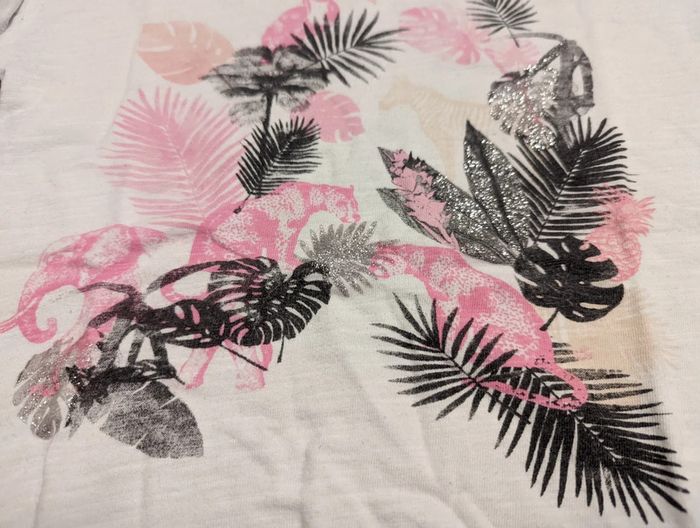 T-shirt fille 4 ans La compagnie des petits, bon état, blanc, rose, noir, argenté. #cellie89fille4ans