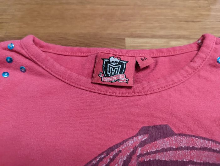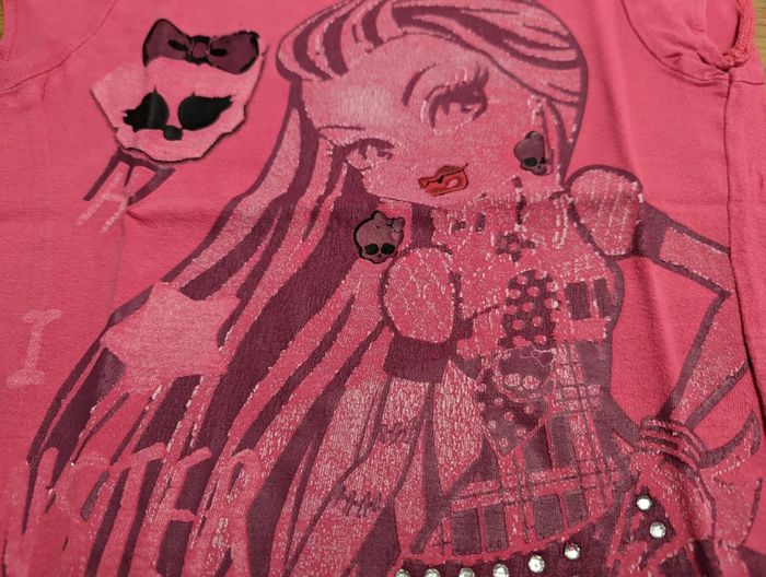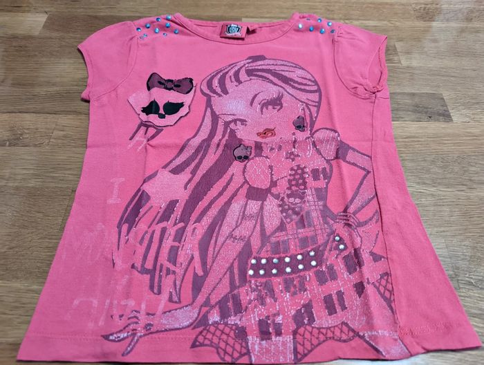 T-shirt fille 6 ans Monster High, bon état général rose, dessin très abîmé, quelques traces. #cellie89_fille6ans
