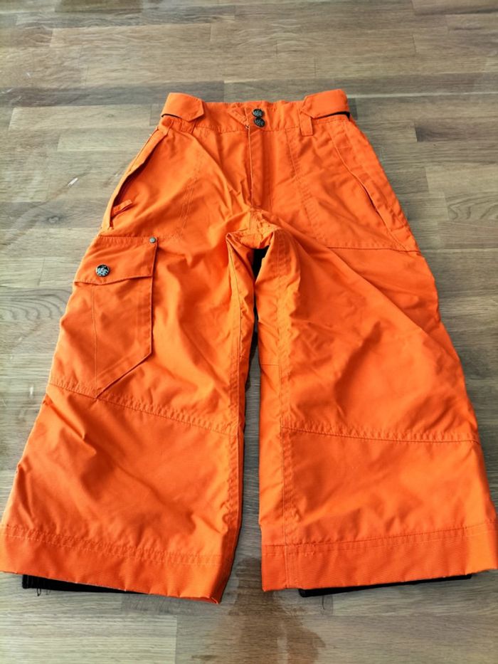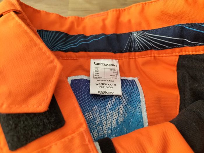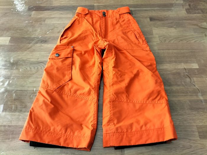 Pantalon de ski 4 ans Wed'ze, bon état général, orange, scratch pour resserrer, légèrement abîmé aux ourlets, et plusieurs traces. #cellie89fille4ans #cellie89_garçon4ans