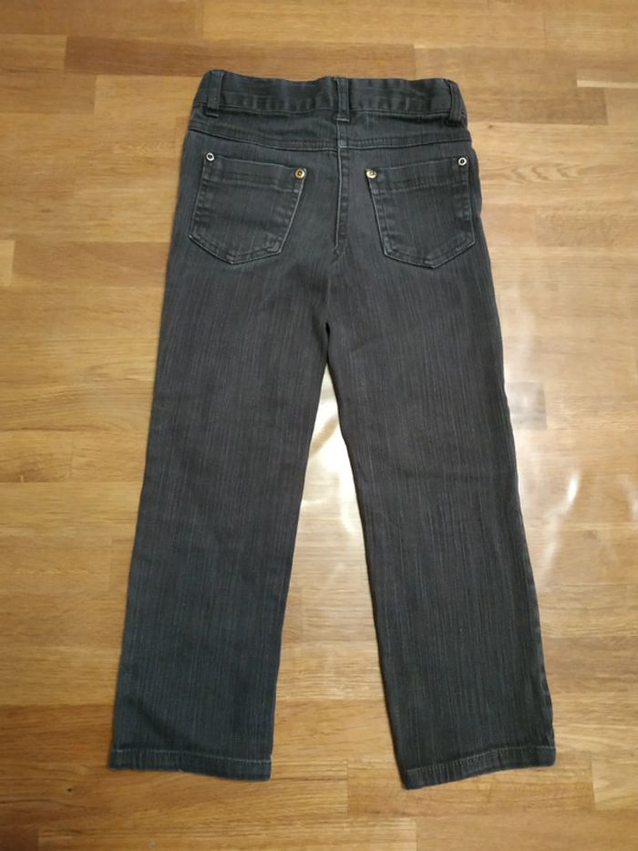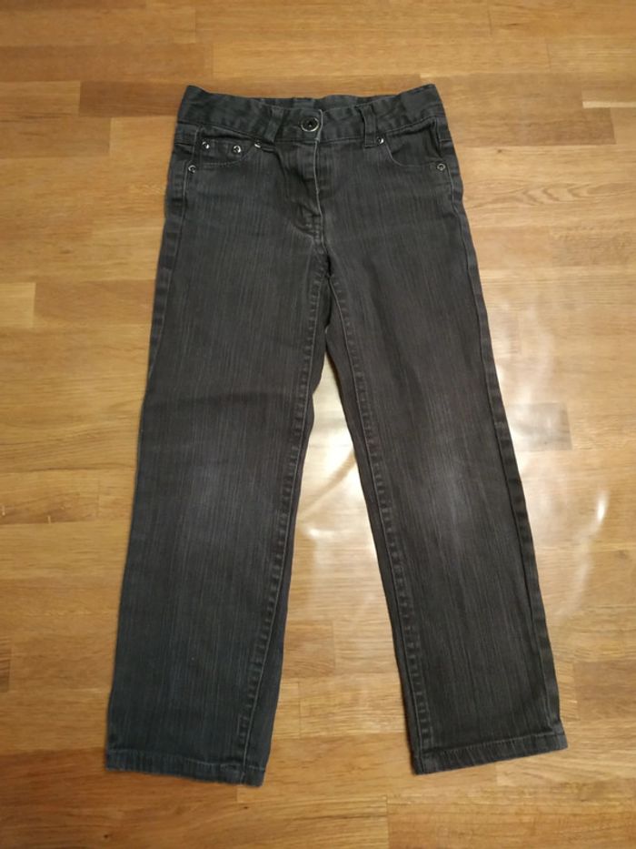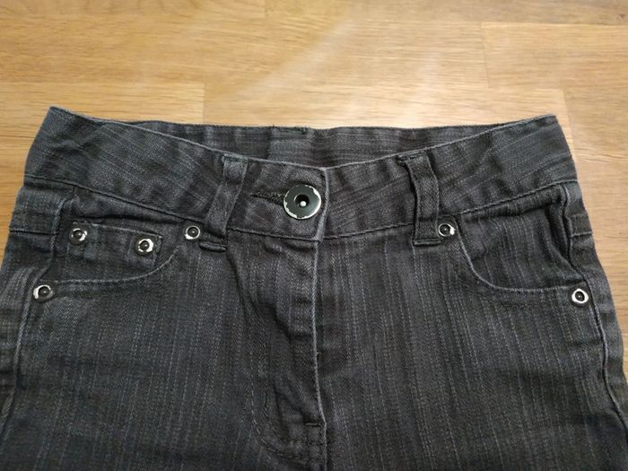 Pantalon fille 5 ans gris, bon état, ceinture ajustable, juste la couleur sur le bouton et les oeillets est en partie enlevée, couleur plus atténuée aux genoux, voir photos #cellie89_fille5ans
