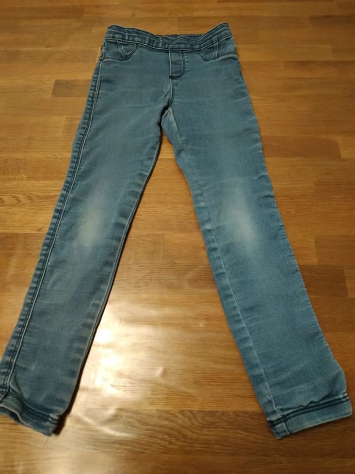 Jegging fille 5 ans Orchestra, effet jean, taille élastique, beaucoup porté, un petit défaut haut cuisse droite devant, défauts au niveau du fessier. Pas de trou. #cellie89_fille5ans