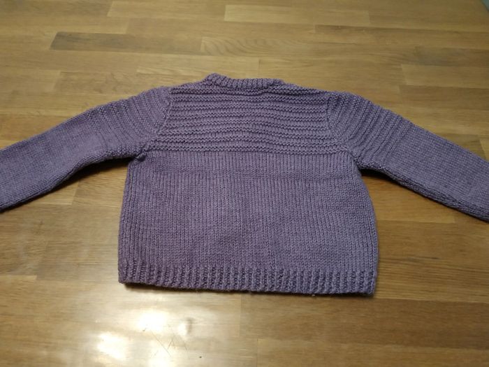 Gilet fille 12 mois tricoté main, très bon état, nombreux détails, lilas, 3 boutons sur le devant. #cellie89_fille12mois