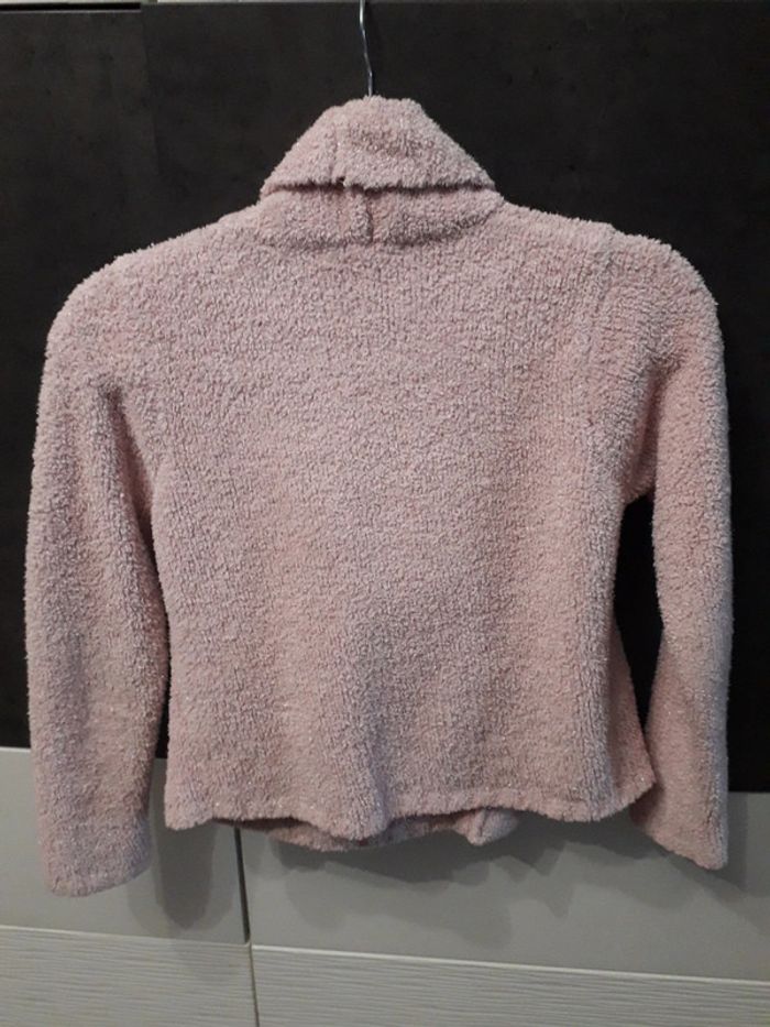 Joli gilet/veste rose avec fils argentés assez chaud, fermeture par 3 boutons style portefeuille, porté mais en très bon état, marque Lisa Rose, taille 12 ans