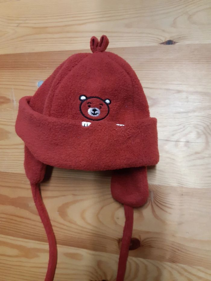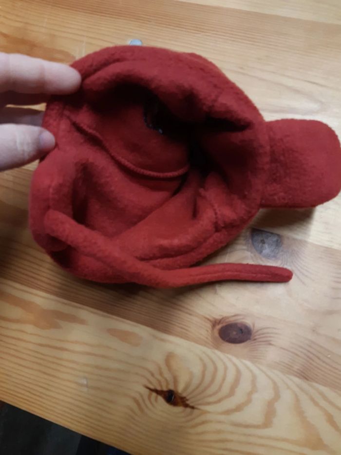 Neuf, seulement lavé. Rouge. polaire chaude et très douce. Unisexe. Cache les oreilles. 47cm. Décor ourson brodé. #loluxiagarcon6mois #loluxiafille6mois #loluxiagarcon9mois #loluxiafille9mois #loluxiagarcon12mois #loluxiafille12mois Etiquette marque otée