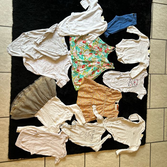 Bon état, 9 bodys, 3 robes 1 legging 4€