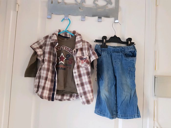 Lot tee shirt chemise et jeans taille 12 mois bon état de marque kitchoun