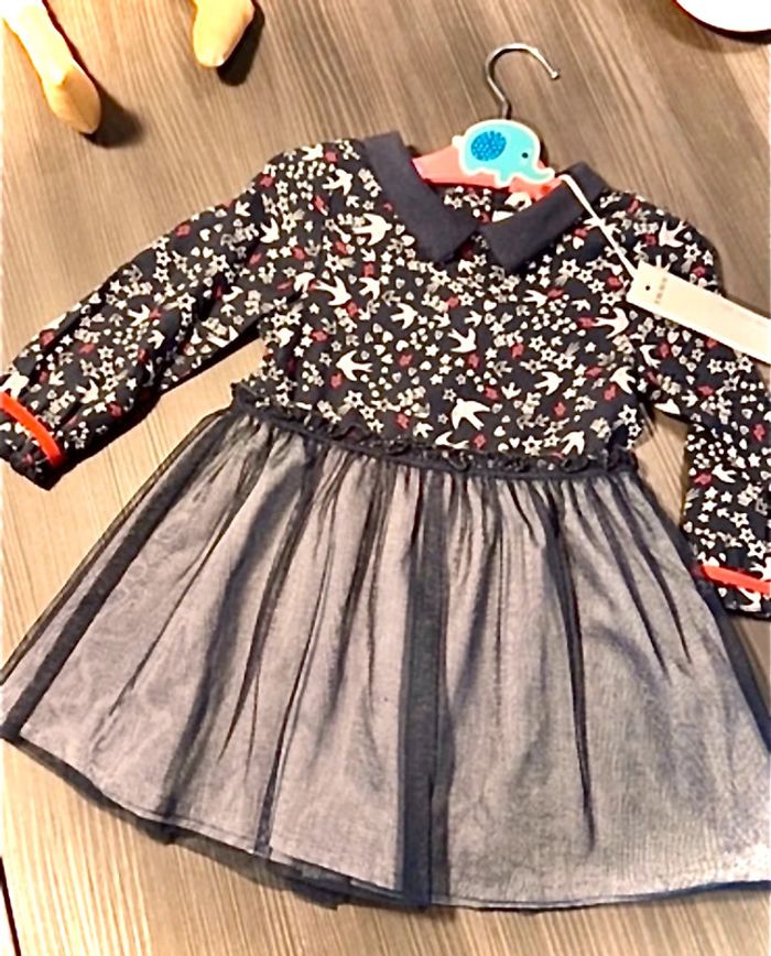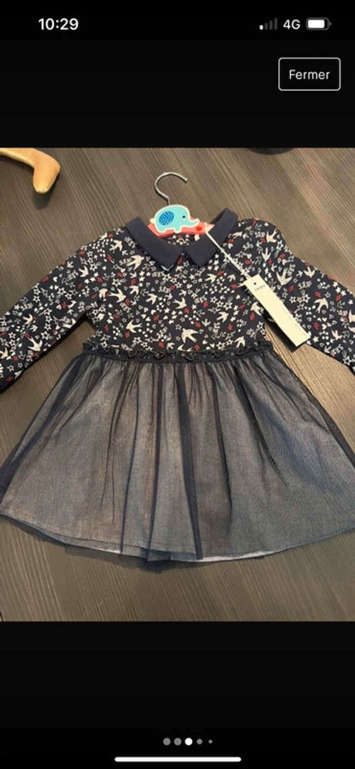 👗 IKKS fille magnifique  robe  bleu marine 12 mois Neuve avec etiquette - photo numéro 1