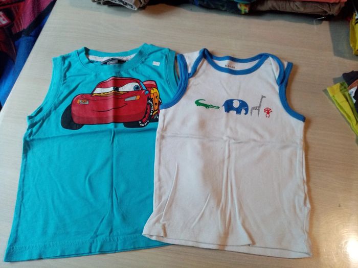 2 débardeurs Un micro trou sur le cars et dessin passé Une tâche sur le 2 ème (voir photo) 4 ans