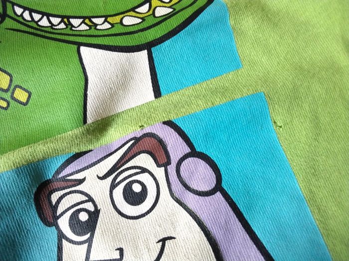 2 tee-shirt toy store Dessin passé ou craquelé et 2 mini trou sur le vert 24 mois