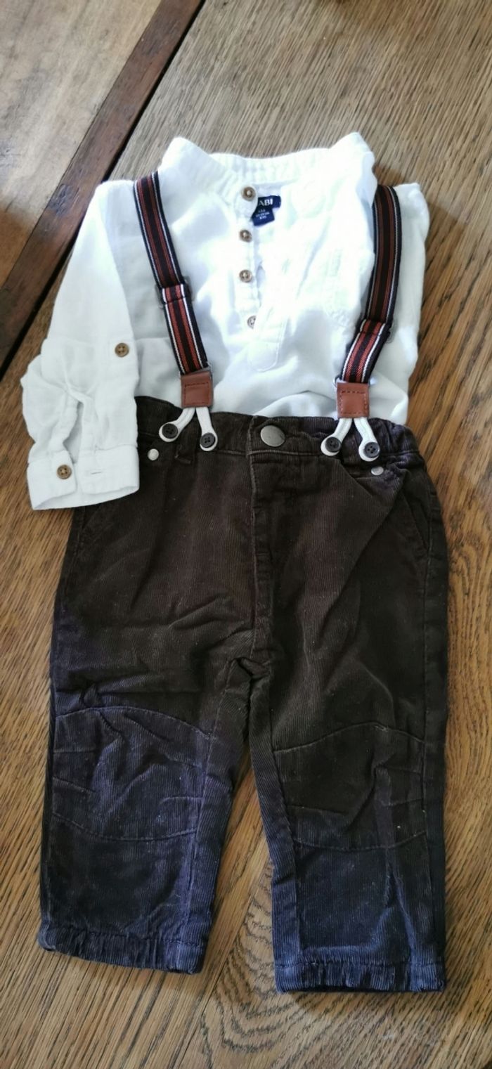 Ensemble kiabi garçon 6 mois Chemise manches longues et pantalon avec bretelles Très bon état