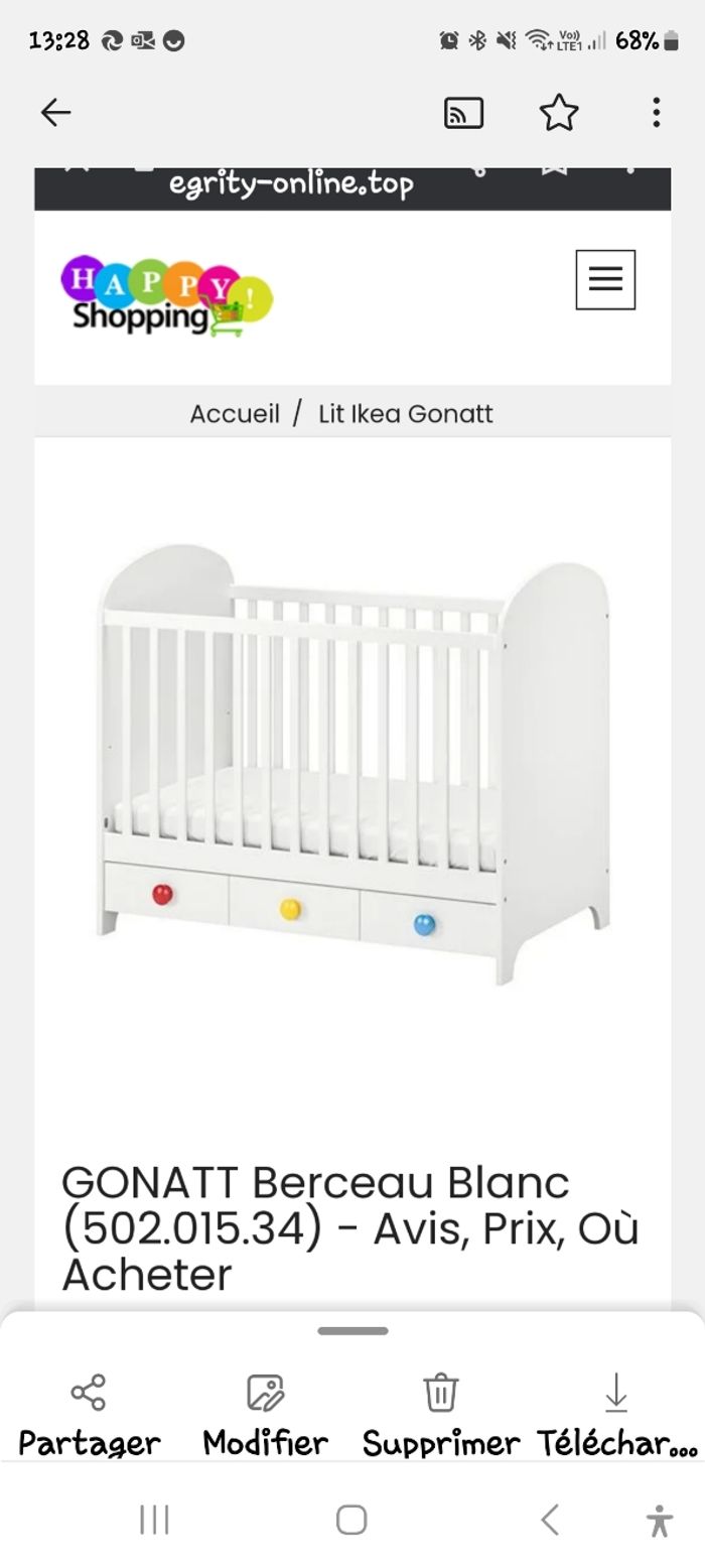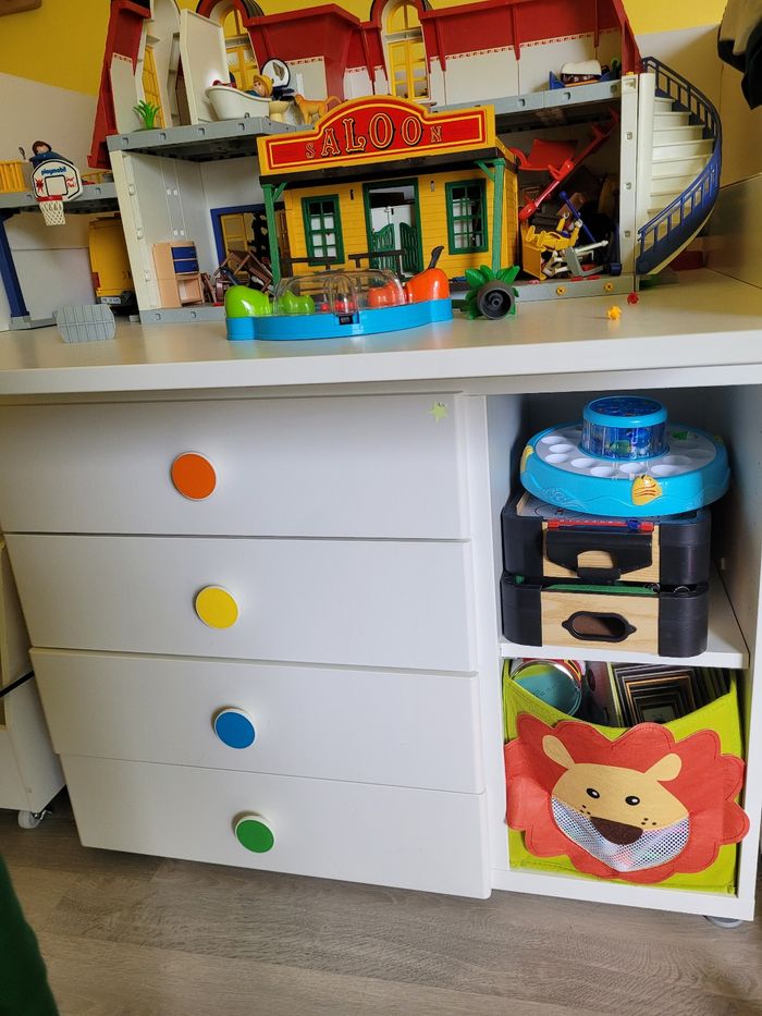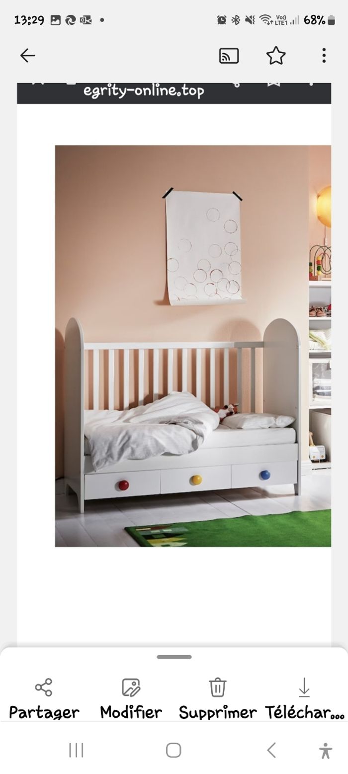 Article en très bonne état, acheter neuf le lit et la table a langer sont évolutif Possibilités de vendre avec c'est article parure de lit avec matelas plus matelas de l'ange plus contour de lit et peluche