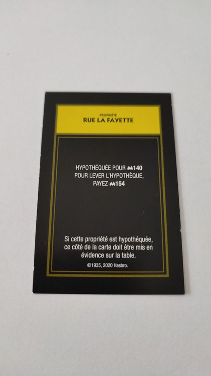 Carte Rue la Fayette pièce détachée jeu de société Monopoly mauvais perdants Hasbro Gaming #B77 - photo numéro 1