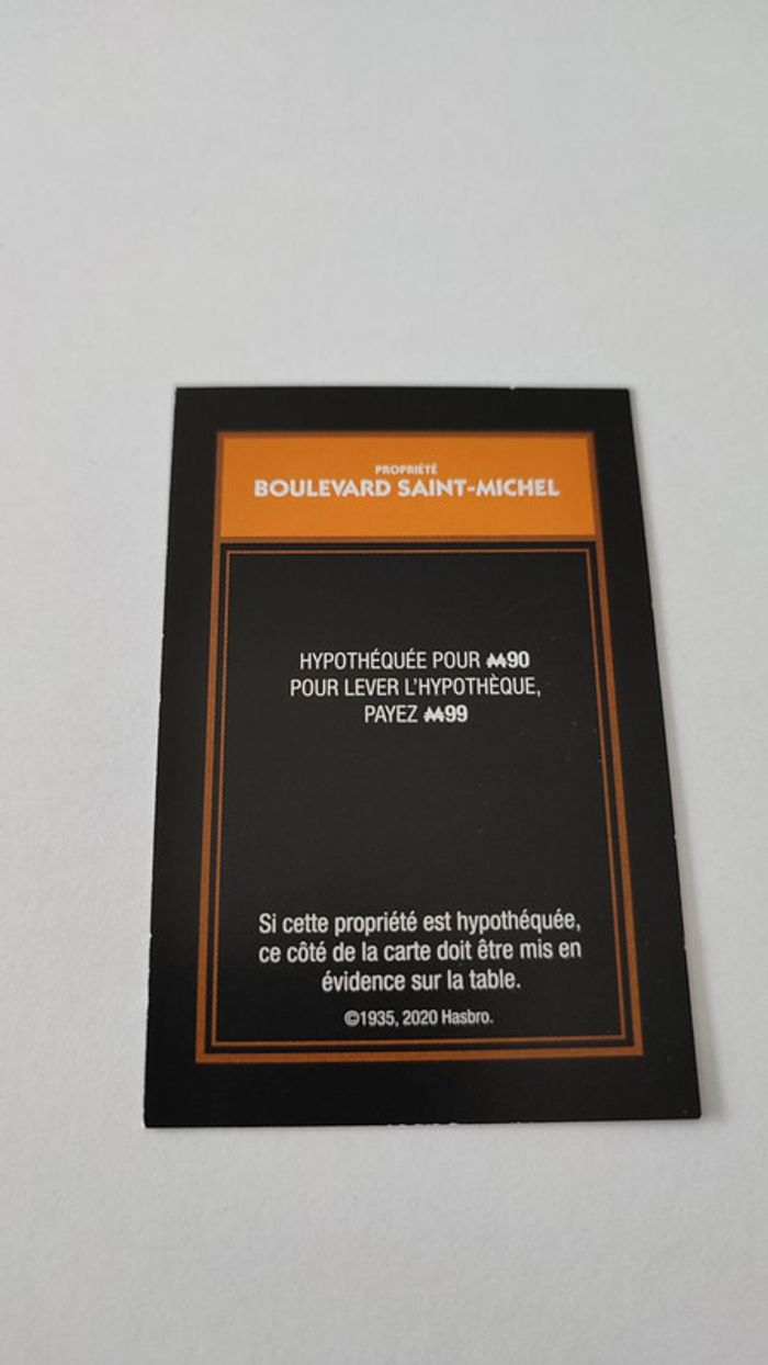 Carte Boulevard Saint-Michel pièce jeu de société Monopoly mauvais perdants Hasbro Gaming #B77 - photo numéro 1