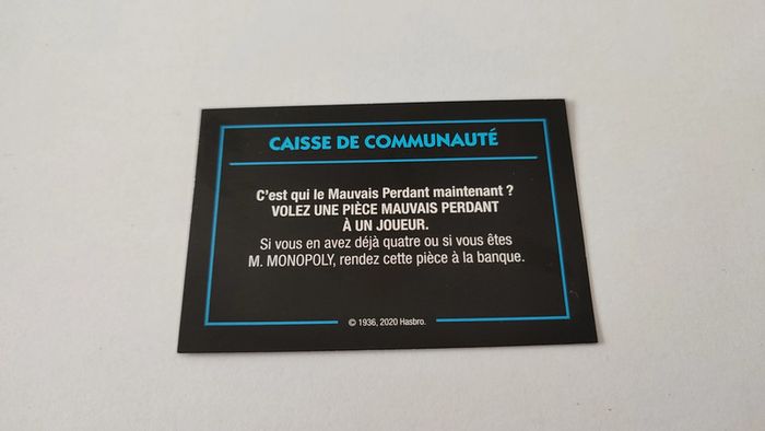 Carte caisse de communauté Volez une pièce jeu Monopoly mauvais perdants Hasbro Gaming #B77 - photo numéro 1