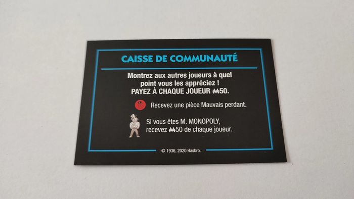 Carte caisse de communauté Payez M50 jeu de société Monopoly mauvais perdants Hasbro Gaming #B77