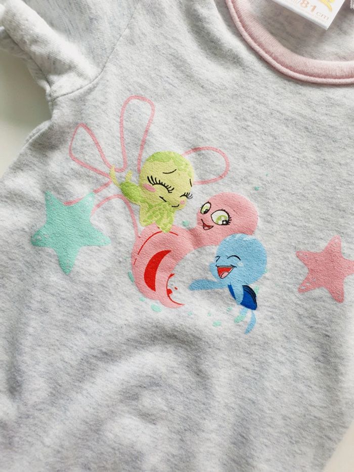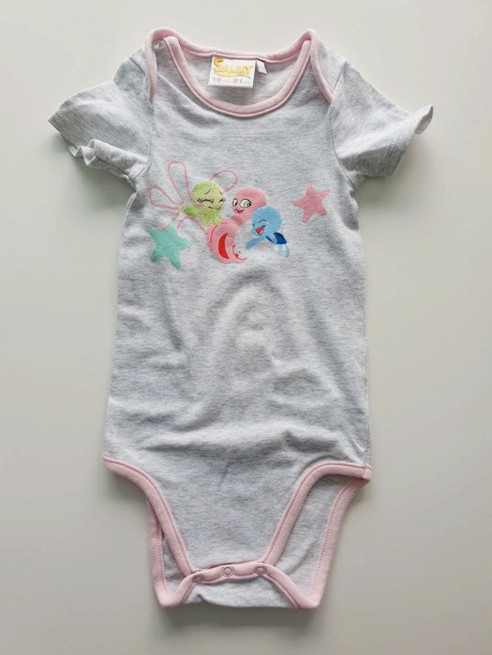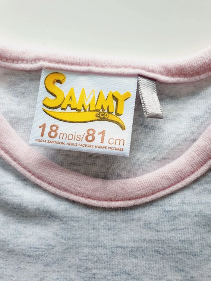 Body manches courtes Sammy & Co Taille 18 mois Coloris gris, avec motif et liseré rose Très bon état