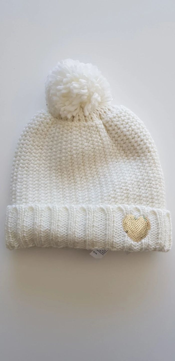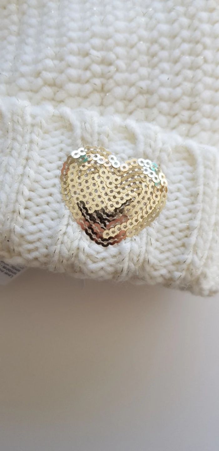 Bonnet Orchestra Taille 53 cm (5/8 ans) Coloris écru Intérieur chaud Coeur en sequins sur le devant Pompom Neuf, ma fille n'a pas eu le temps de le mettre, déjà trop petit