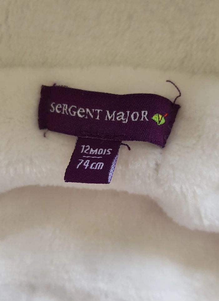 Veste gilet a capuche Sergent Major Taille 12 mois Coloris bleu (bleu de la 1ere photo) Intérieur doublure chaude Idéal pour l'automne ou le printemps Fermeture par zip + boutons Très bon état