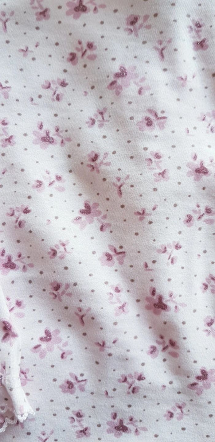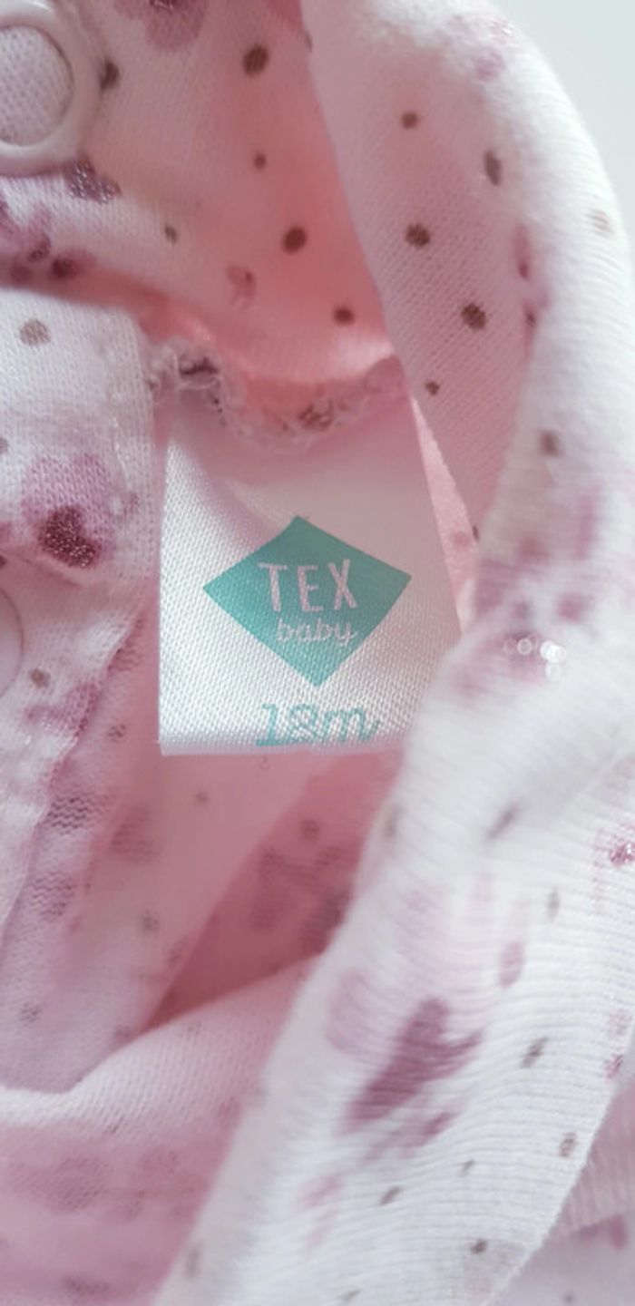 Tee-shirt Tex baby Taille 12 mois Coloris rose avec fleurs. Des paillettes sur les fleurs Élastiques aux poignets Très peu porté